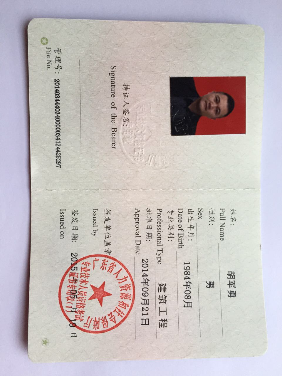 一級建造師 | 胡軍勇 | J200457211 | 00451094 |