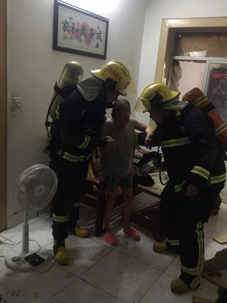 消防官兵到現(xiàn)場后,發(fā)現(xiàn)是一所居民樓發(fā)生爆炸,房屋周圍到處都是炸碎的玻璃,屋內還有兩名老人,房屋周圍能聞到濃烈的煤氣味道。若不立即救出兩名老人,隨時會發(fā)生窒息的危險,消防官兵立即把門撞開,進屋內發(fā)現(xiàn)老人還有清晰的意識,兩名老人身上均有不同程度的燒傷。